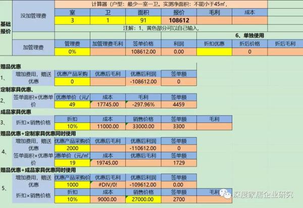 第三優(yōu)惠,優(yōu)惠計(jì)算不是簡(jiǎn)單的計(jì)算優(yōu)惠對(duì)毛利率影響的多少,而是利用戶(hù)型+面積的一房一價(jià)計(jì)價(jià)方式的,事前毛利率能夠清楚的算出的特性,設(shè)置不同級(jí)別的優(yōu)惠,同時(shí)根據(jù)精準(zhǔn)的毛利率計(jì)算的時(shí)效性,清楚設(shè)置出新的按最終盈利結(jié)果的績(jī)效方式,而以業(yè)績(jī)?yōu)榻Y(jié)果的績(jī)效方式天生就有問(wèn)題。采用戶(hù)型+面積的一房一價(jià)計(jì)價(jià)方式事前毛利率計(jì)算清楚,是我們現(xiàn)在所追求的阿米巴經(jīng)營(yíng),就非常容易實(shí)現(xiàn)。大家都知道導(dǎo)入阿米巴經(jīng)營(yíng),是需要花大價(jià)錢(qián)的,并且依靠系統(tǒng)支持,西安積木家是我所見(jiàn)到公司,這方面唯一一個(gè)做到的。而采用簽單前毛利率的精準(zhǔn)的特性,利用依靠恒定毛利率,在不改變現(xiàn)在按業(yè)績(jī)提成的績(jī)效的條件下,增加毛利率折業(yè)績(jī)或者超毛利分成,就可以實(shí)現(xiàn)營(yíng)銷(xiāo)人員從一個(gè)銷(xiāo)售人員到經(jīng)營(yíng)人員的轉(zhuǎn)變,并且不傷害原有的組織、制度和績(jī)效。(來(lái)源:深度家居企業(yè)研究)