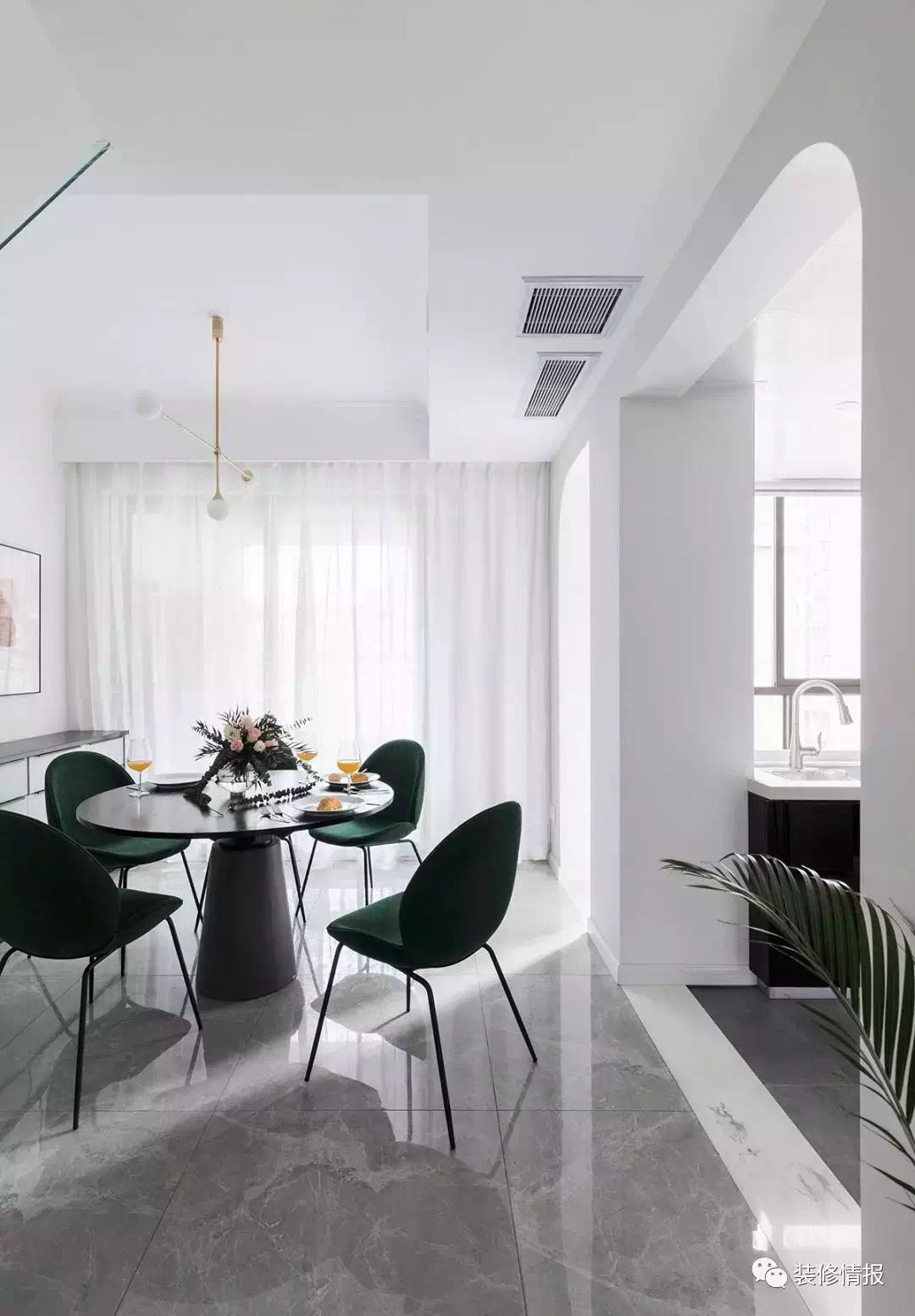 設(shè)計(jì)師希望能打造一種符合業(yè)主生活習(xí)慣的居住環(huán)境,同時(shí)能融合具有各種特色的藝術(shù)元素.。在空間的利用問題上,通過合理分配,解放了狹窄的原始餐廳區(qū)域,連通陽臺(tái),獲得了9.6米的開闊空間。